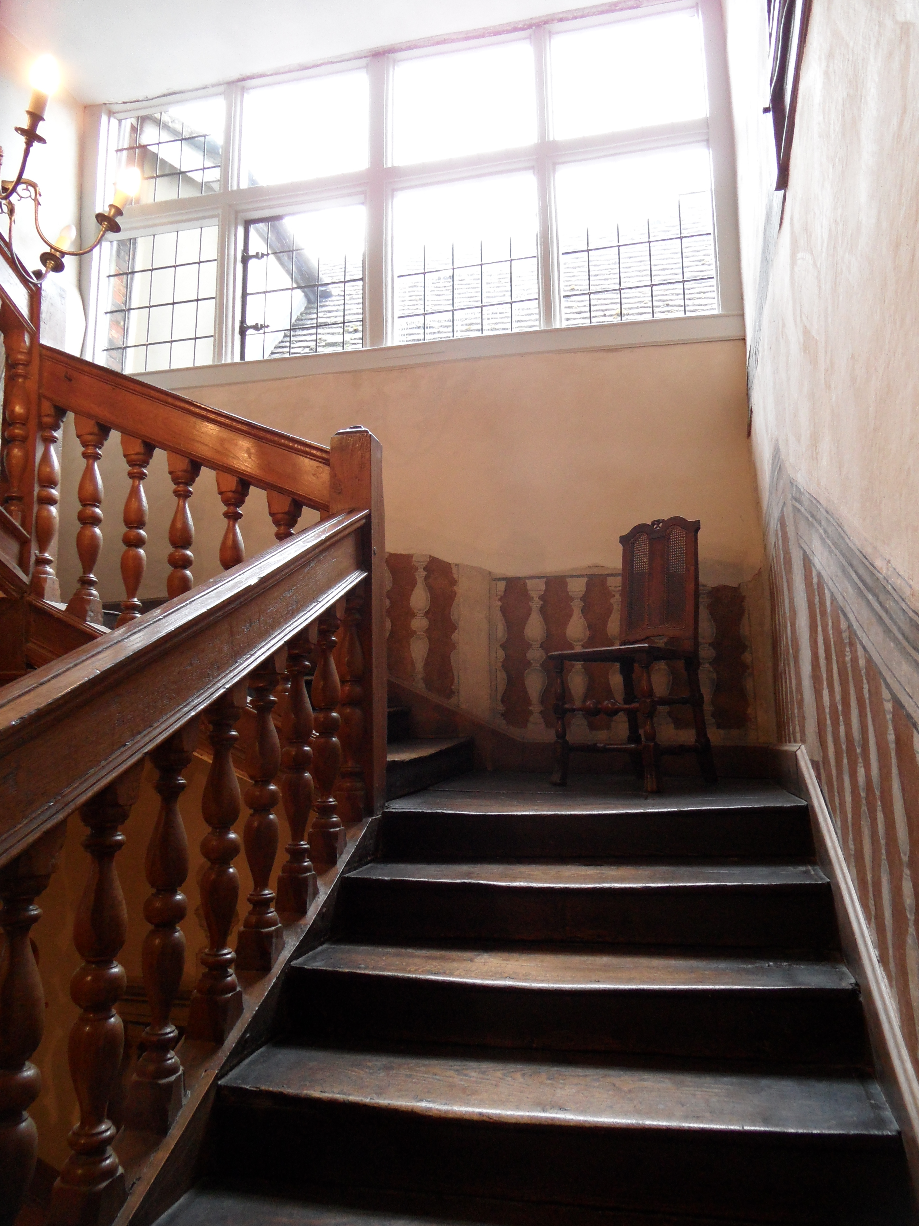 Perhaps it was the whirling, twirling and blaring of the Marlborough Mop in the High Street outside that put such ideas into my head, but the wonky staircase felt almost like it belonged to a ‘Haunted House’ fairground attraction. The oak creaked loudly underfoot, the walls bent inwards under their own weight, the floors were uneven and wavy. All in all it almost presented a caricature of a seventeenth century house, the sort of place a 10 year old might conjure up if tasked with finding a home for an Elizabethan ghost.