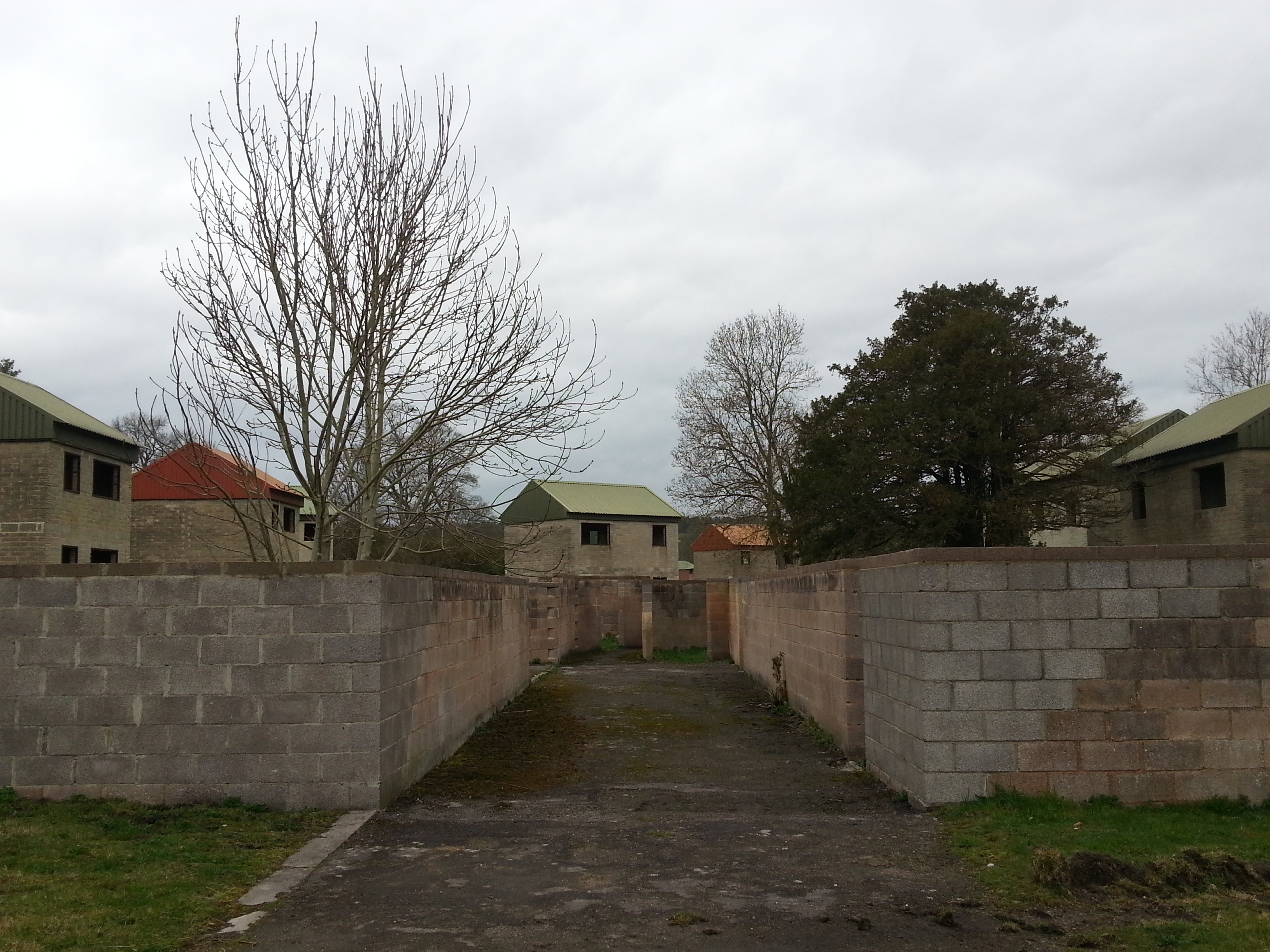 Today there isn’t much those evictees would remember. A map, also part of the church display, illustrates just how few of the original buildings remain, the bulk of them replaced by artless, uniform constructions made of breezeblocks for training purposes. Our visit began between two such residential sections, leaving a layby through a gap in the hedge and walking through a field up behind some houses to the main ‘street’. Had we appraoched from the road we’d have seen that the public were not supposed to venture this far, but in truth there was no real reason why people shouldn’t. Bypassing the rulebook in this way allowed us to enter some of the houses and poke around, and the experience was richer for it. Don’t expect to see much inside, but it does offer some insight into military training techniques.